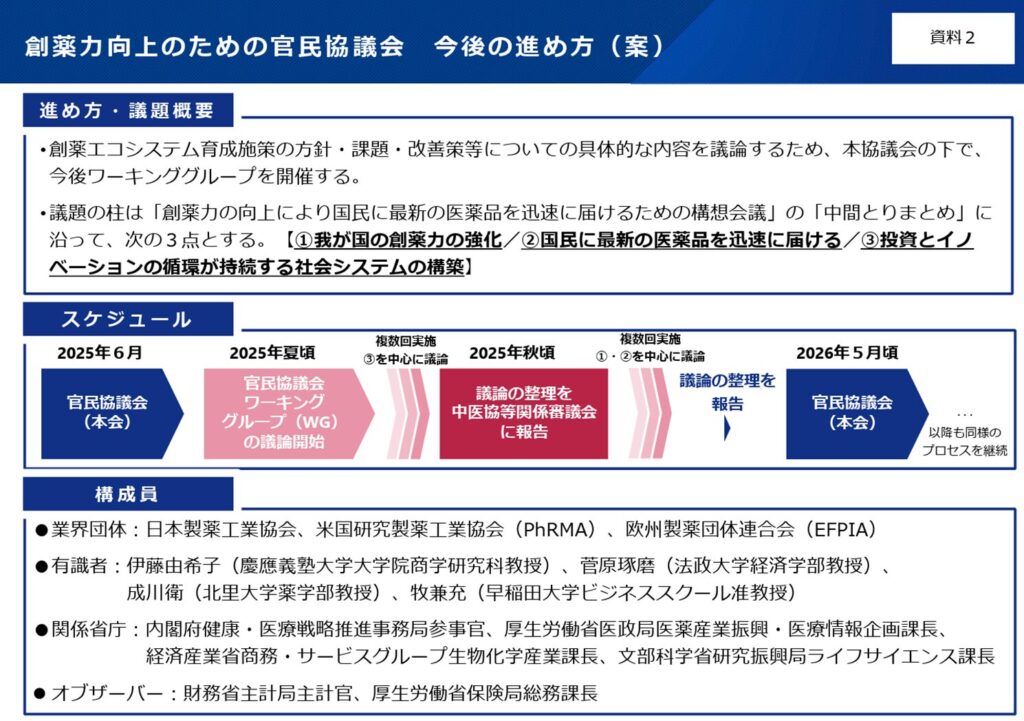 少し前になりますが、2025年6月26日に開催された創薬力向上のための官民協議会を取り上げておきます。