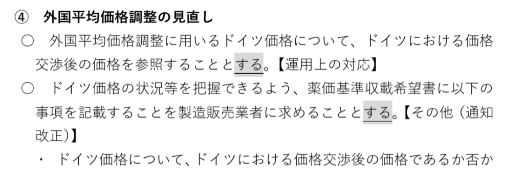 外国平均価格については、ドイツ価格にメスが入りました。ドイツでは、最初の半年は企業が設定した価格で販売可能となっており、高めの設定が可能でした。そこの厚労省はメスを入れたことになります。