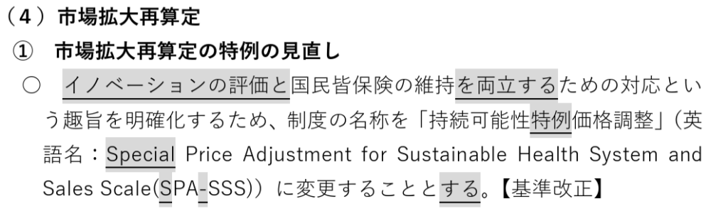 名称変更その2です。市場拡大再算定が「持続可能性特例価格調整」となります。
